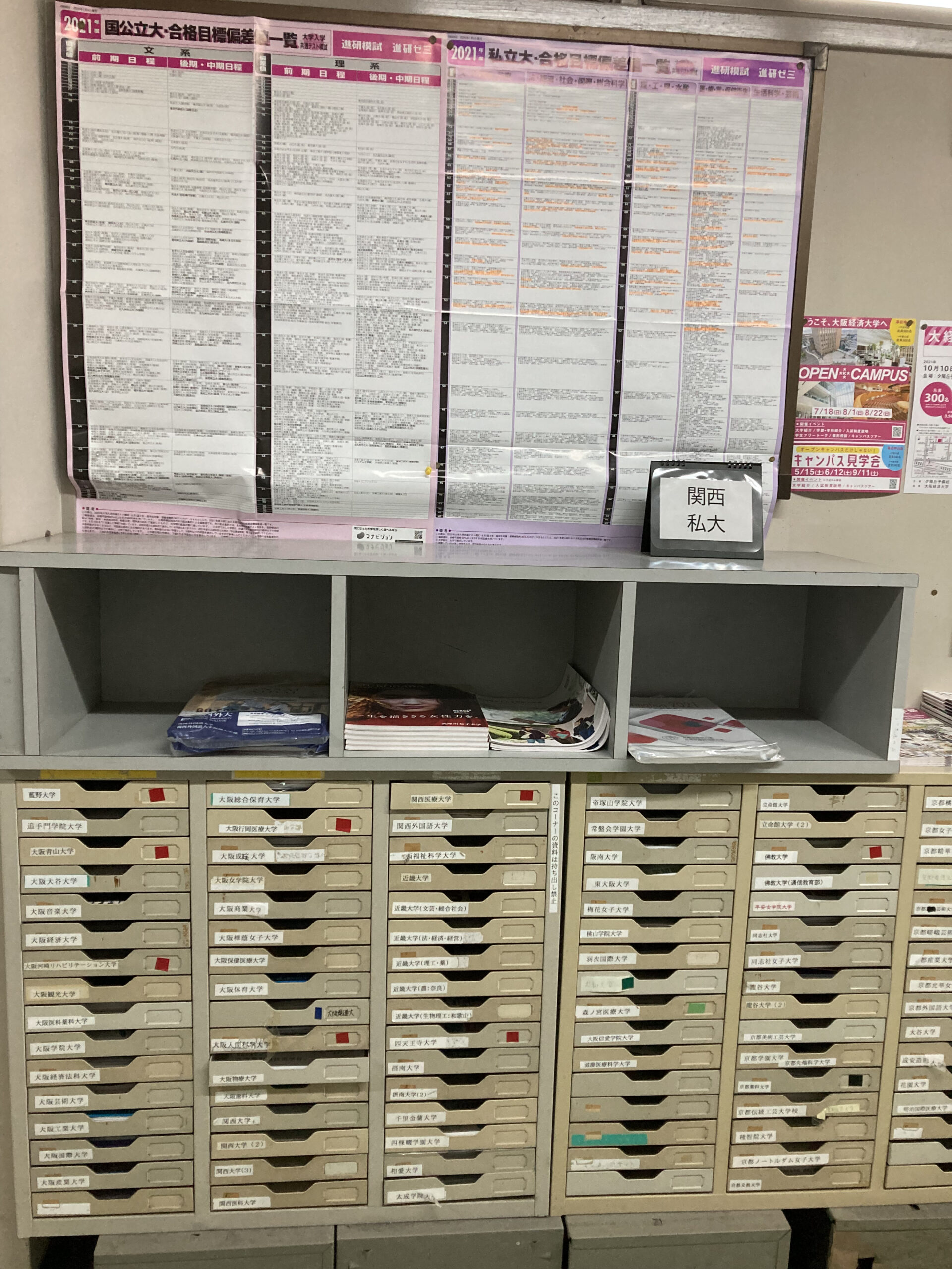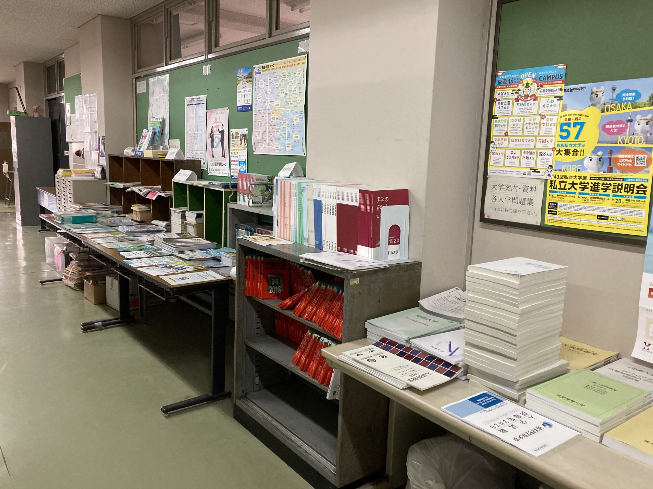 阿倍高生がよく出願する学校のものは随時ここに並びますので、3年生は下校時にでも見に来るようにしましょう。