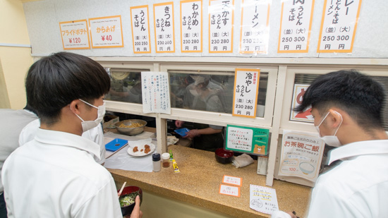 食堂は地下にあります。人気のメニューが並びます。
