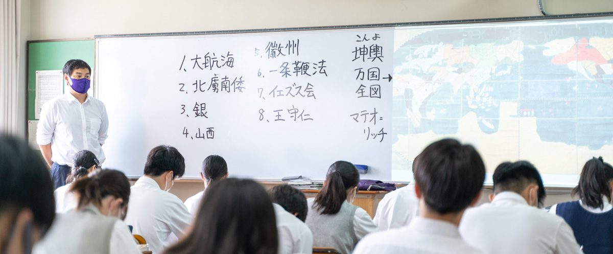 令和2年度に前方の黒板がホワイトボードになりました。 授業の板書はより見やすくなり、チョークの粉が舞うこともありません。 近頃はPC端末(Chromebook)の活用もあり、電子黒板を使用する授業も増え、よりホワイトボードの有効性が高まっています。 これからも教室環境の改善に努めていきます。