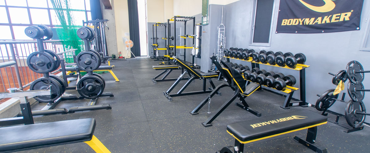 トレーニング機器を製造・販売する「BODY MAKAR」のトレーニング機器が充実して揃っています。本校の卒業生が代表取締役を務めておられて、令和2年に寄贈いただきました。運動部員がそれぞれに目標やメニューを決めて、本格的なトレーニングに汗を流しています!