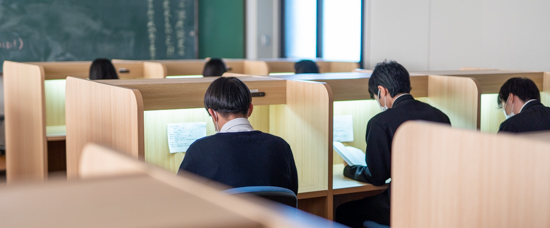 近年、本校の学習に関する取り組みや進学実績の身長が認められ、教育庁の補助金によって設置されました。もちろんエアコン、デスクライト、ふかふかの椅子も完備。平日、下校時刻まで開放しており、整った環境の下で多くの生徒が机に向かって、自習しています。