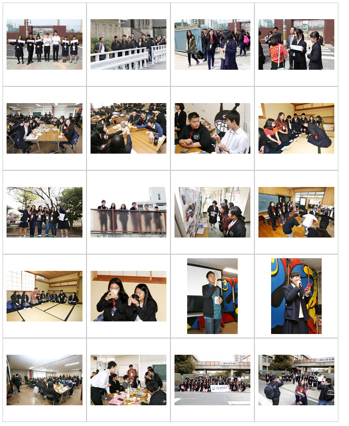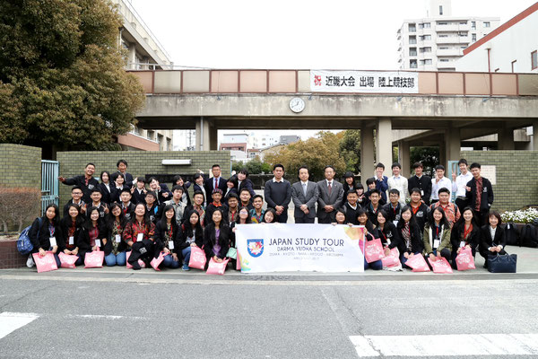 校門で集合写真を撮影し、12時半頃、地下鉄の昭和町駅に向かうDY高校生を見送りました。正門から公園に向かう歩道上で、角を曲がって我々の姿が見えなくなるまで手を振り続けていたDY高校の生徒たち。一期一会の出会いが阿部高生にも、目に見えない大切なものを残してくれたと思います。