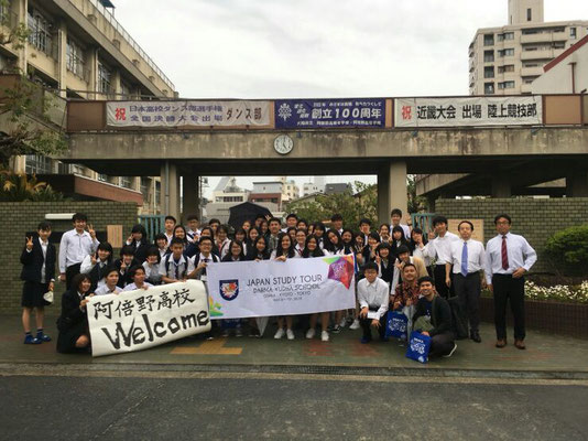 昨年に続き、大阪での交流相手として阿倍野高校を選んでくれたのは嬉しいことです。25名の訪日団の中には昨年も本校での交流に参加した男子生徒も交じっていました。お迎えする本校の国際交流生徒実行委員会のメンバーは31名。委員長の作田君が中心になり、役員の生徒が企画や調整等の準備にあたってくれました。