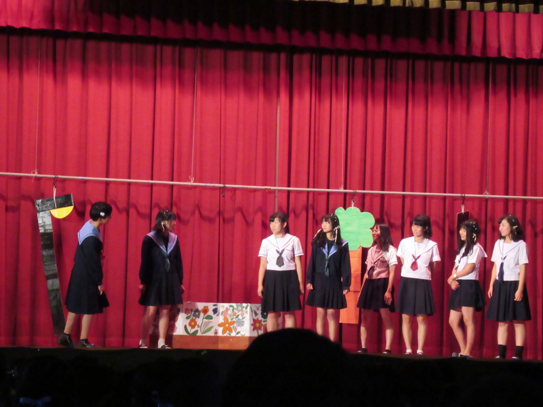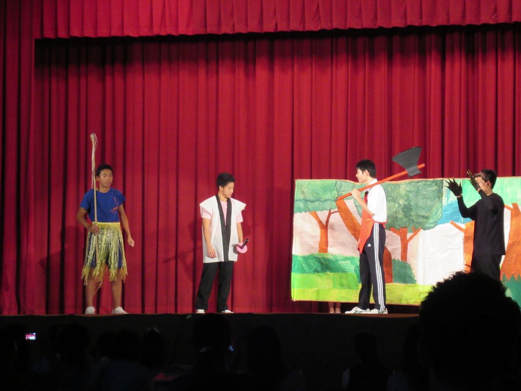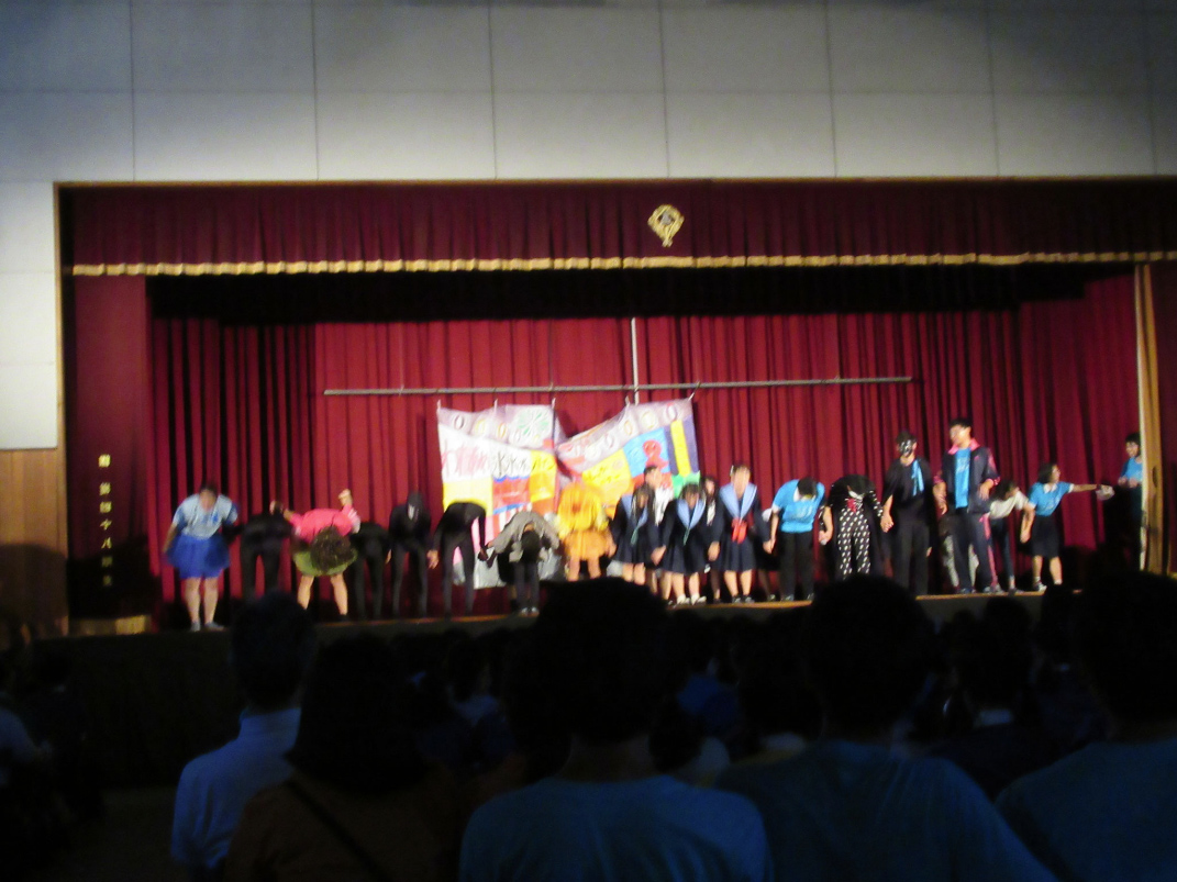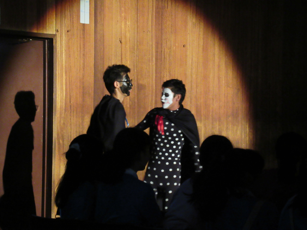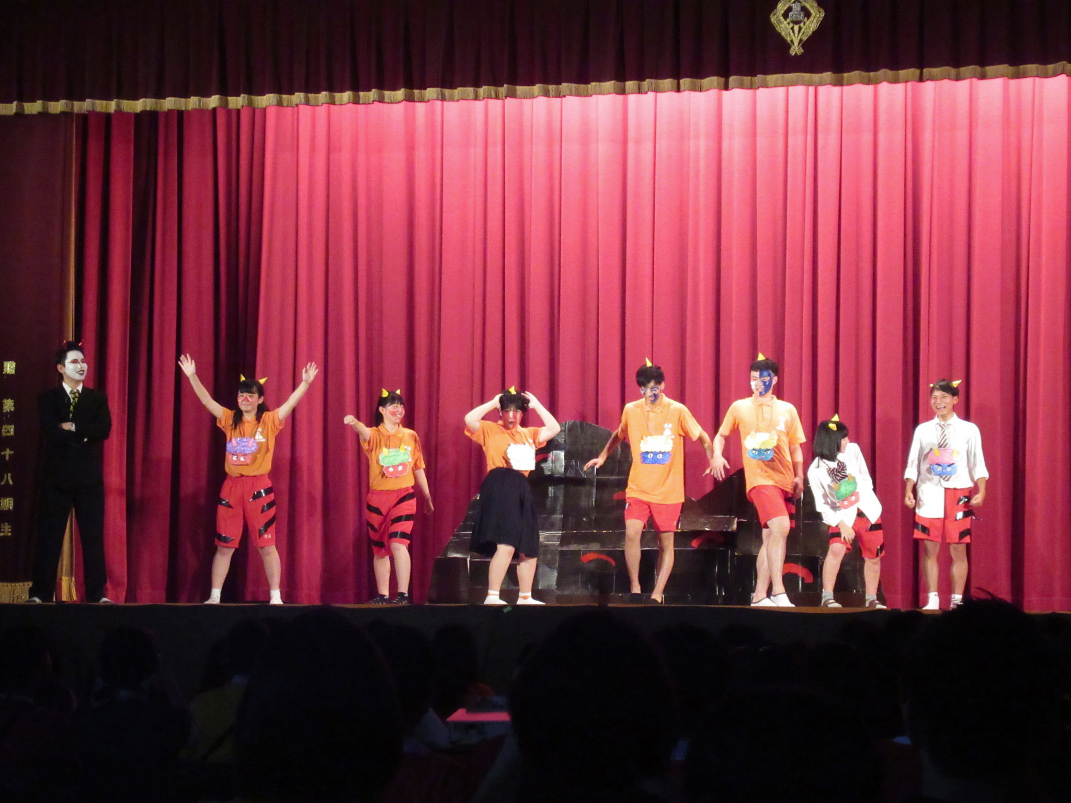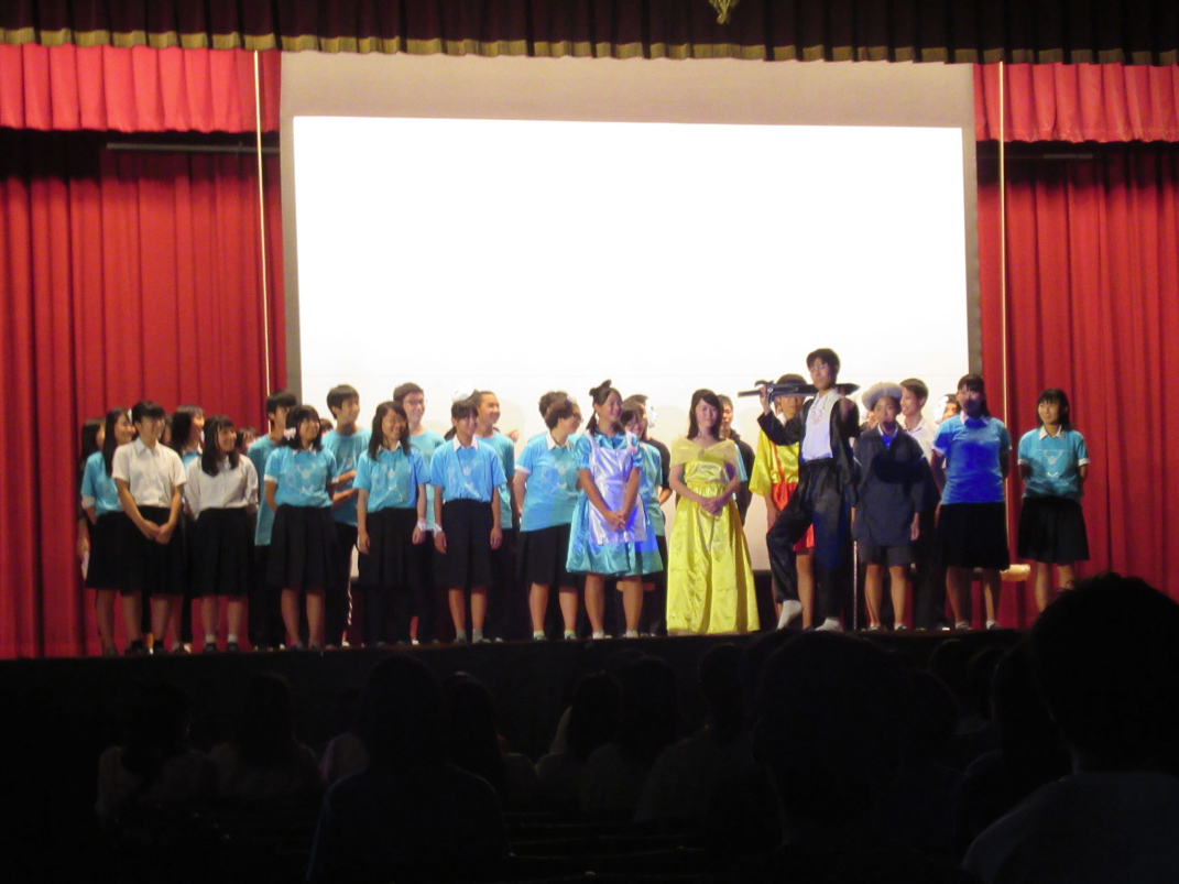 2019.09.06 文化祭1日目 校長ブログ 0906Fri いよいよ文化祭が始まりました!1日目は学校内のみでの開催です。今日は体育館の舞台ばかりを観劇しましたが、どのクラスもよく準備して練習を重ねていたのかがわかりました。正統派の演劇舞台があったり、ユニークな工夫を凝らした演出で笑いの多い舞台もあり、それぞれがクラスの個性を出してとても楽しく観劇できました。 クラス全員の共創力と団結力が20分間のパフォーマンスに凝縮して発揮されていました。本校の生徒には多様な力がまだまだ無限にあります。明日は一般のお客さん方々を巻き込んで盛大に楽しませてくれることでしょう!