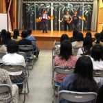 竹富島からの情報です。美味しい夕食をいただき、地元の人々が三線と歌で歓迎していただいているようです。最後の曲は生徒たちも一緒に踊っていました。文化が違う島の人々との出会いは生徒たちに感動を与えて成長させていくのでしょうね。