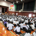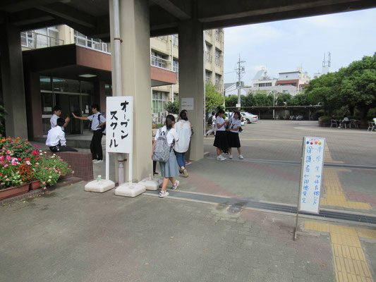 まだ残暑が残っていますが中学生の皆さんは意欲的に校内を見学していました。保護者の方々へは教員が説明会を開き、中学生には本校生徒が吹奏楽部の歓迎セレモニーから映像による紹介などいろいろな催しをして各クラブ活動や相談窓口などを開いて希望するところへ各自で行ってもらいました。