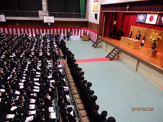 2019.02.28 第71回卒業証書授与式 イベントレポート 第71回卒業証書授与式を挙行致しました。 足元の悪い中、多くの保護者やご来賓の参加があり、357名の生徒が巣立っていきました。 式辞はこちらをご覧ください。