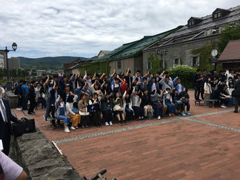 今日は全員一斉に小樽へ向かいました。11時頃に小樽へ到着、小樽運河の前でクラス写真の撮影。