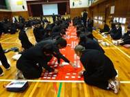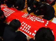 1月23日は恒例の1年生の「百人一首大会」でした。会場は毎年柔道場も使っていましたが、今年は体育館に全員集まって行い一体感がでていました。