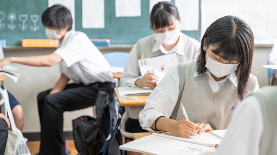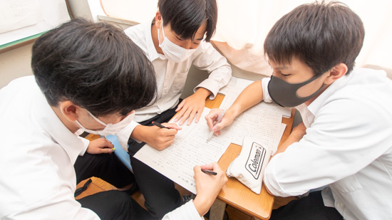 考査前の授業では、授業内容が終わっていれば、友人と教え合いをしながら学習する時間もあります。