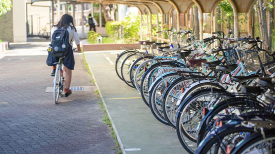 誰に言われるでもなく綺麗に自転車を並べるのが阿倍高生らしいところです。