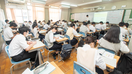 モジュール授業!毎朝10分間、英語の聞き取り・書き取りの0限授業を行っています。英語力だけではなく、集中力もアップ!